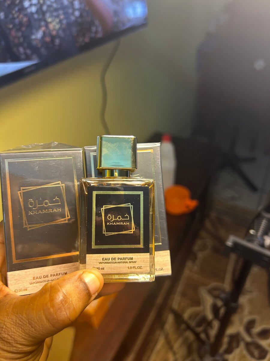 Découvrez Khamsah, un parfum de luxe captivant. Son arôme envoûtant vous enveloppera de mystère et d'élégance. Parfait pour des occasions spéciales ou des soirées, il deviendra votre signature olfactive. Flacon de 60 ml, idéal pour offrir ou s'offrir.