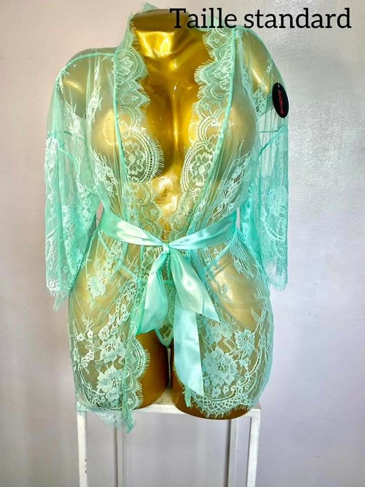 Charmant kimono en dentelle verte, idéal pour une allure élégante et séduisante. Taille standard, parfait pour les moments de détente ou des occasions spéciales. Fabriqué avec des matériaux de haute qualité pour un confort optimal.