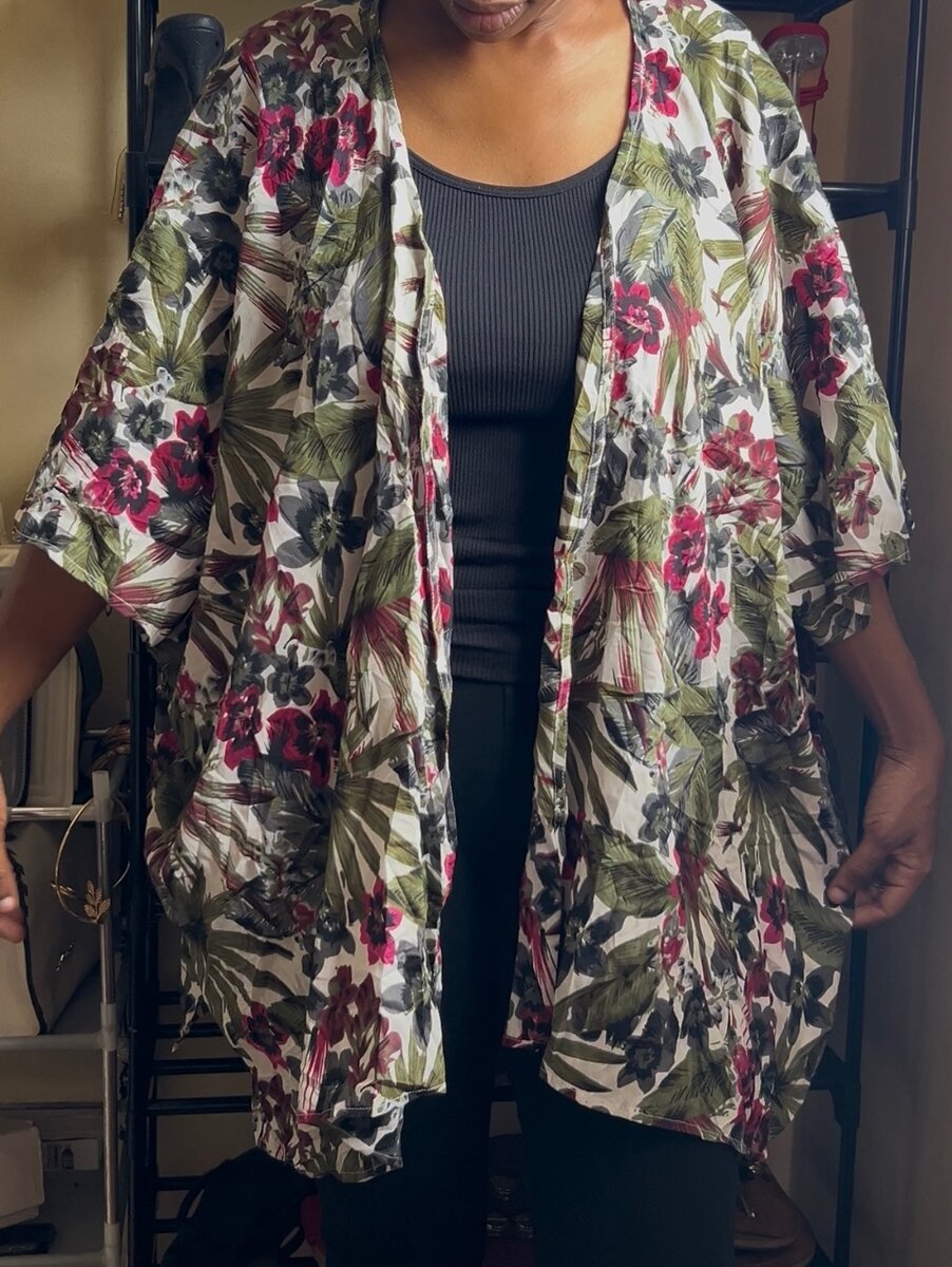 Ce kimono léger à motif fleuri est l'ajout parfait à votre garde-robe pour un look élégant et décontracté. Idéal pour superposer sur une tenue simple pour une touche de style bohème, ce kimono est confortable et chic. Parfait pour les sorties estivales, les vacances ou même une soirée décontractée. Faites ressortir votre style avec ce kimono floral polyvalent.