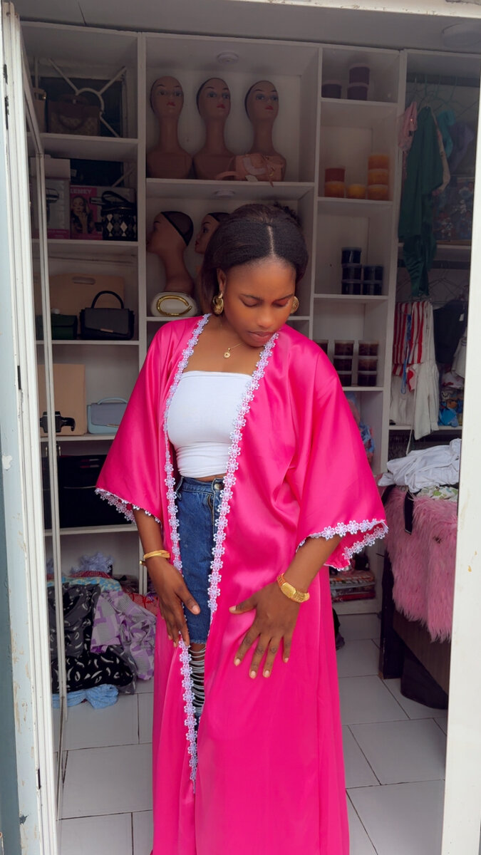 Adoptez une allure chic et moderne avec ce kimono en satin rose, parfait pour les journées décontractées ou les soirées élégantes. Ce vêtement polyvalent est idéal pour superposer sur vos tenues préférées, ajoutant une touche de sophistication à votre style. Facile à assortir et confortable à porter, ce kimono est un incontournable pour toutes les saisons. Transformez votre look avec une touche de glamour!