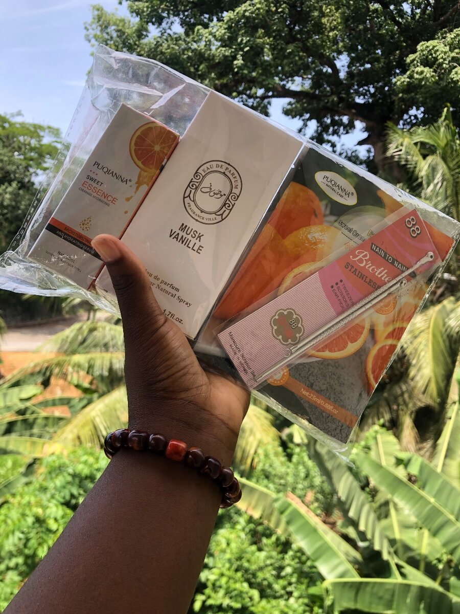 Composé de : -Parfum Mosuf musk vanille (50Ml) -Sérum de visage vitamine C -Masque Facial Coréen (3 pièces) -outil pour dégraisser le visage et casser les boutons du visage (2 pièces)