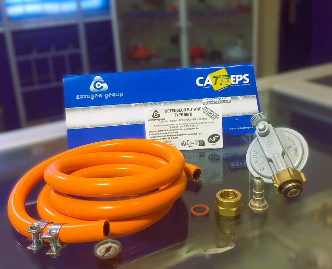 kit détenteur gaz butane avec raccord + adaptateur faitout