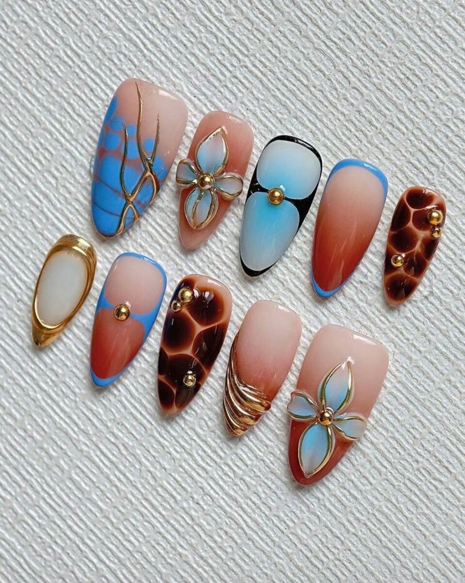 Transformez votre look avec ce kit de faux ongles au design artistique et élégant. Chaque ongle présente des motifs uniques, mêlant couleur, texture et détails dorés pour une finition sophistiquée. Parfait pour les soirées ou occasions spéciales. Facile à appliquer et confortable à porter.