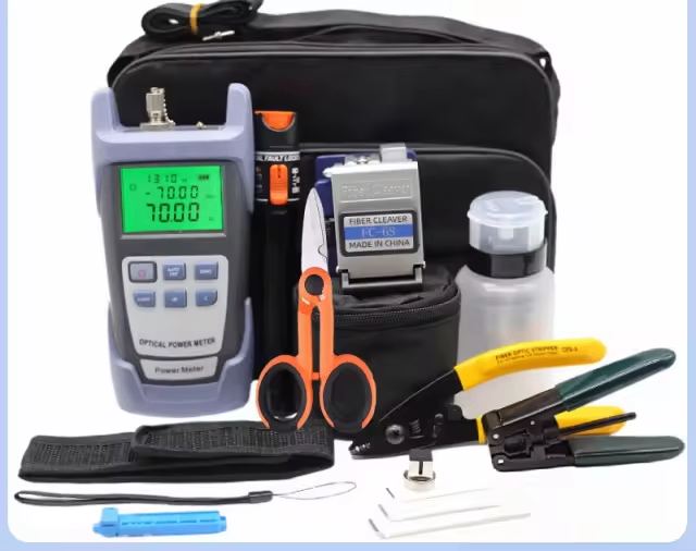 Optez pour ce kit complet de mesure et maintenance de fibre optique, parfait pour les techniciens. Il inclut un mesureur de puissance, un coupeur de fibre précis, un localisateur visuel de défauts et des outils essentiels. Idéal pour des installations en milieu professionnel ou domestique. Transportable grâce à sa mallette pratique.