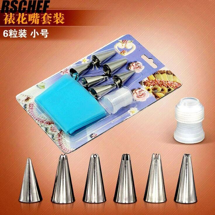 Kit de poche à douille complet pour la décoration de gâteaux. Contient 6 douilles en acier inoxydable et une poche en silicone. Idéal pour les pâtissiers débutants et expérimentés.
