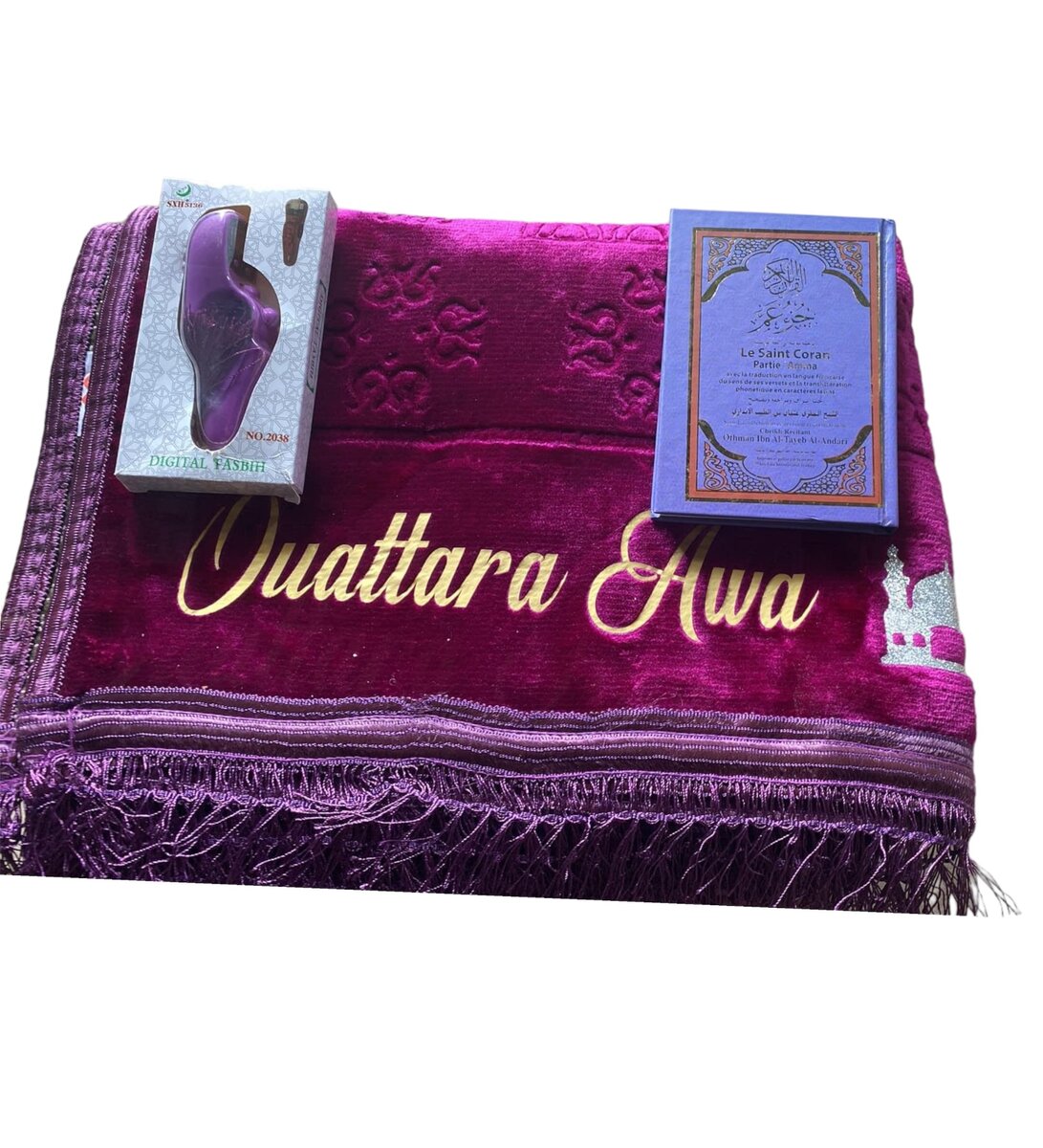 Tapis personnalisé en velour+ tasbir+coran