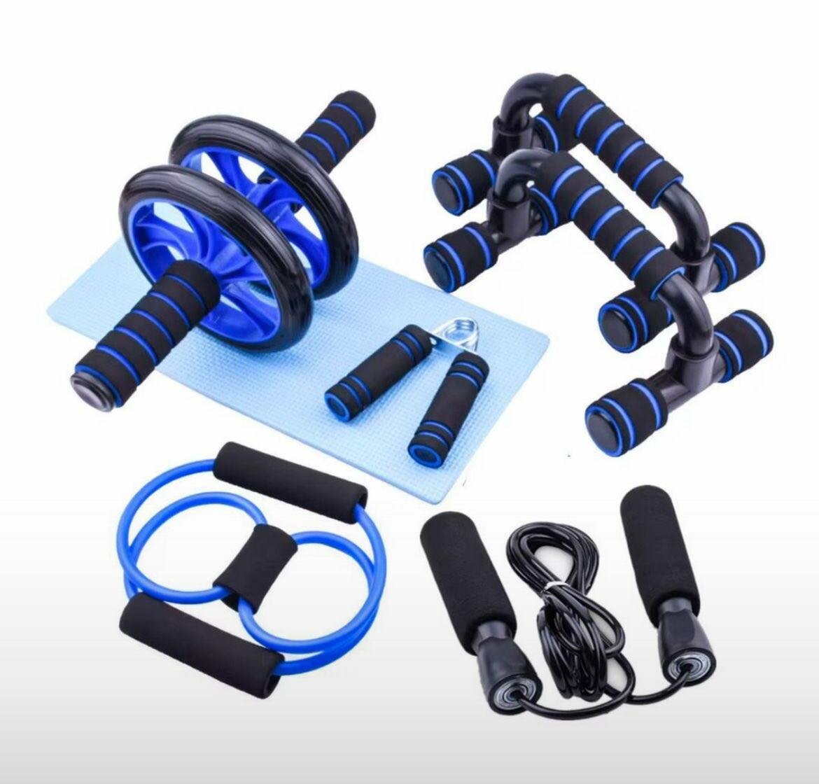 Transformez votre routine fitness avec ce kit complet d'entraînement 5-en-1. Comprend une roue abdominale, des poignées pour pompes, une corde à sauter, un expandeur et un tapis de yoga. Idéal pour la maison ou la salle de sport, ce set vous offre tout pour sculpter votre corps efficacement.