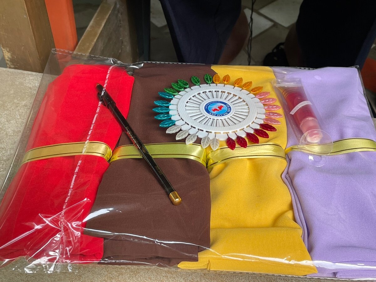 Fourlard +bornet + épingle + gloss et crayon ou senteur . À partir de 2000