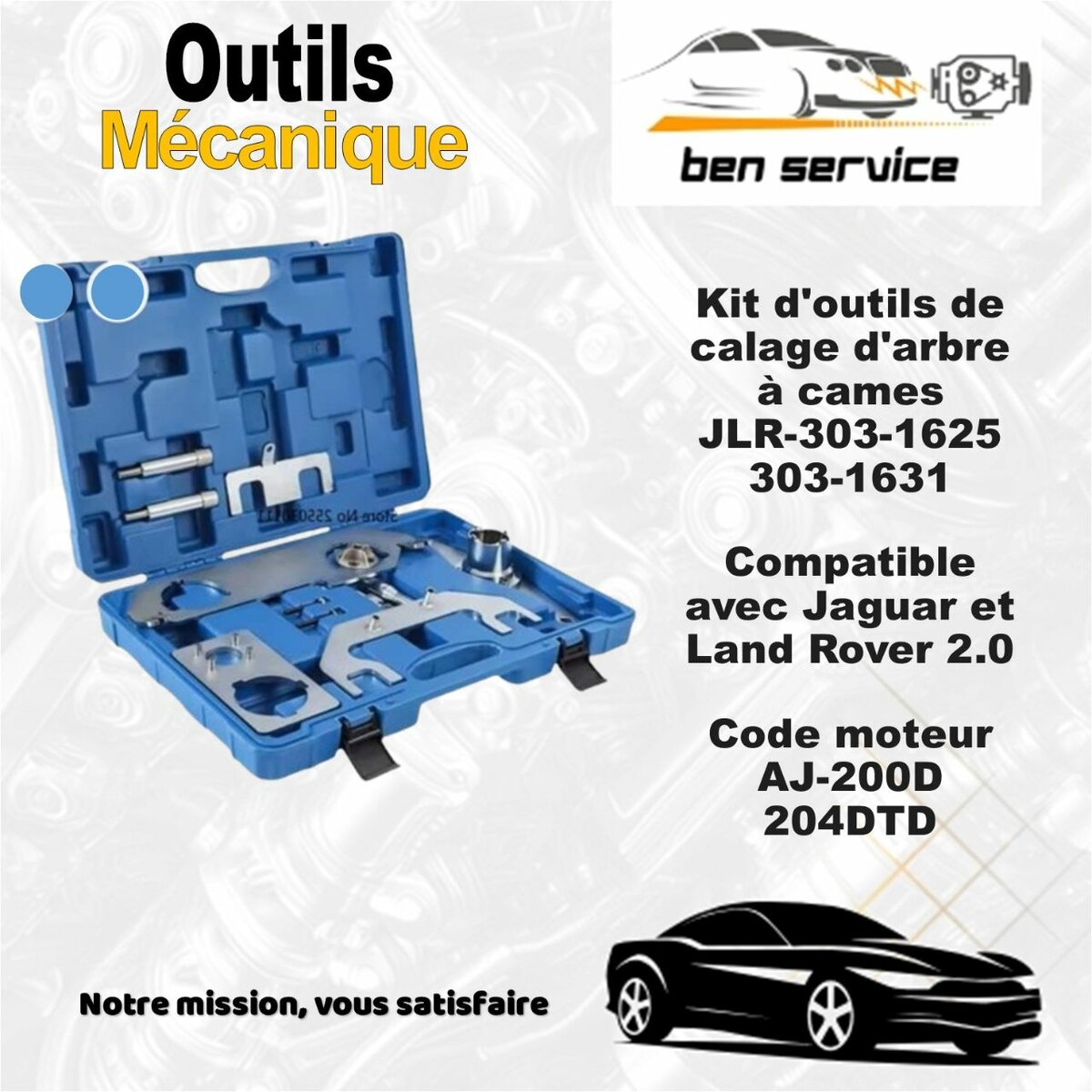 Kit d'outils de calage d'arbre à cames, idéal pour Jaguar et Land Rover 2.0. Comprend JLR-303-1625 et 303-1631. Compatible avec moteur AJ-200D et 204DTD. Solution parfaite pour l'alignement moteur précis.