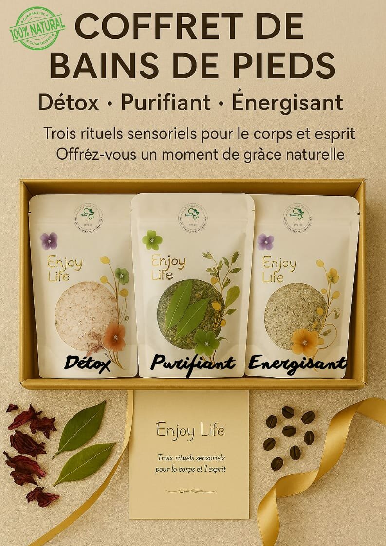 Profitez d'une expérience de détente ultime avec notre kit sel de bains pour Le corps ou les pieds Détox, Purifiant et Énergisant. Chaque sachet offre un rituel apaisant pour revitaliser votre corps et votre esprit. Idéal pour un moment de relaxation naturelle.