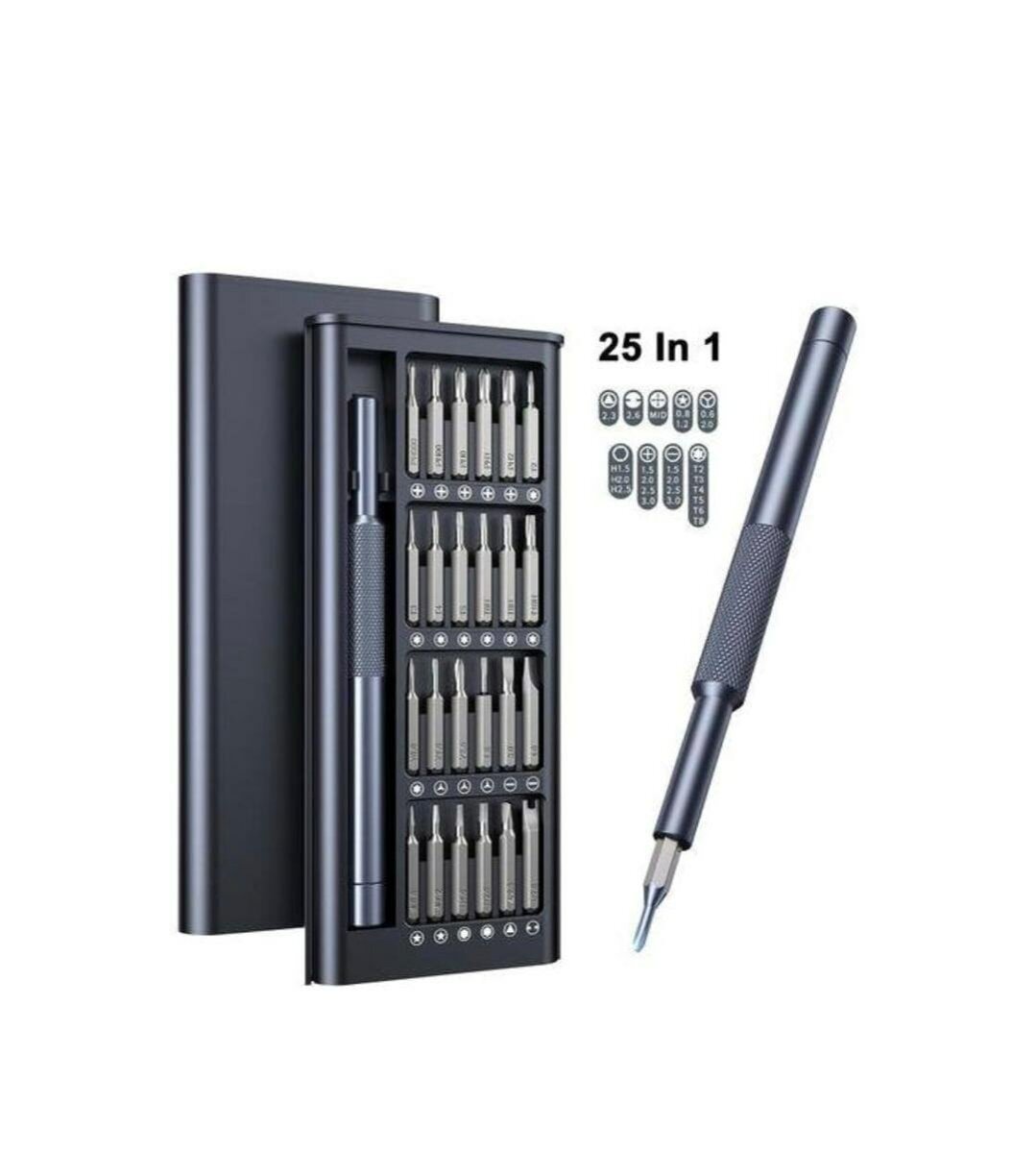 Découvrez ce kit tournevis 25 en 1 idéal pour toutes vos réparations précises. Compact et polyvalent, il comprend 25 embouts différents en acier durable pour répondre à tous vos besoins de bricolage. Parfait pour les appareils électroniques, lunettes, bijoux et plus. Un indispensable pour tout bricoleur averti!