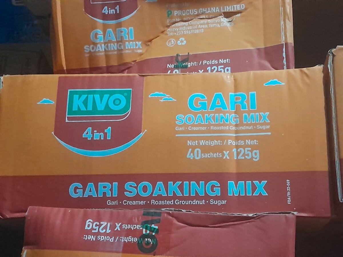 It includes gari,creamer,roasted groundnut and sugar