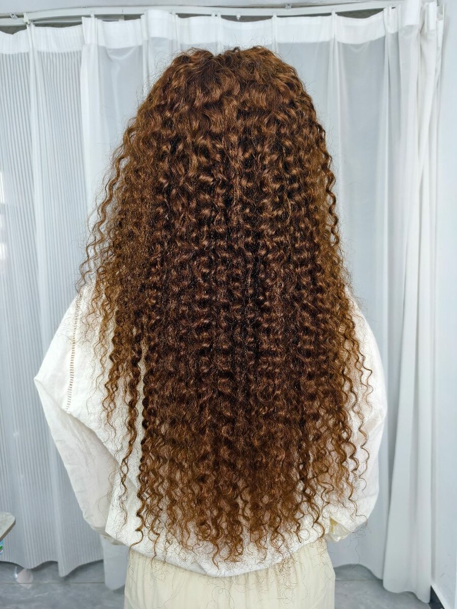 Cheveux vietnamiens, longueur 28, front normal, boucle circulaire, brun, plein et moelleux.