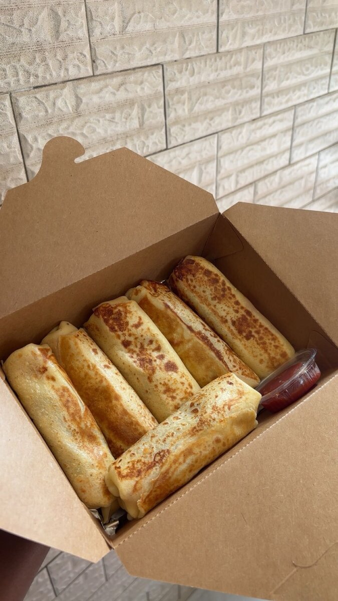 06 crêpes de 24 cm avec garniture au jambon de bœuf, poulet émincé, fromage et sauce béchamel plus pot de sauce offert.