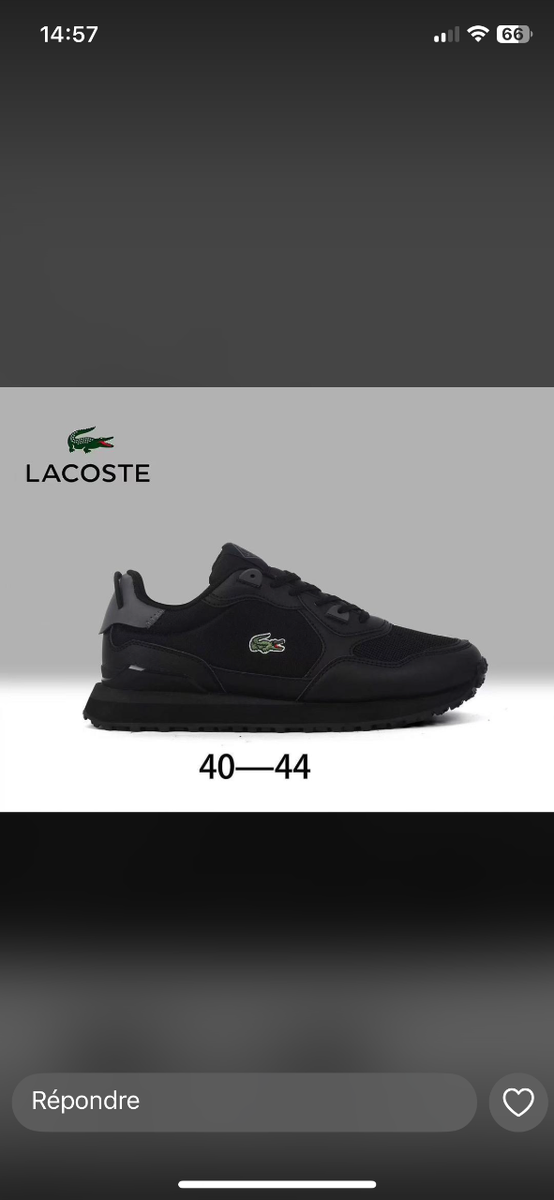 Découvrez les sneakers Lacoste pour homme, alliant style et confort. Disponibles en tailles 40 à 44, ces baskets sont parfaites pour un look à la fois sportif et chic. Idéales pour un usage quotidien ou vos sorties décontractées, elles complètent parfaitement votre tenue. Choisissez le confort et l'élégance avec Lacoste.