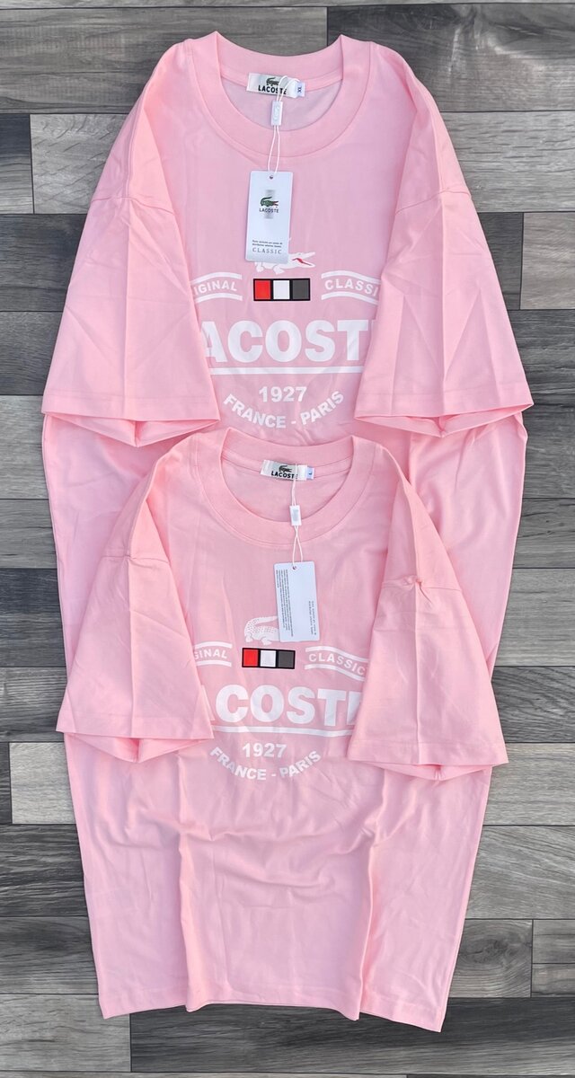 T-shirt Lacoste de couleur rose conçu pour les hommes. Confortable et élégant, ce vêtement de qualité supérieure est idéal pour les occasions décontractées. Logo distinctif et détails soignés. Disponible avec des étiquettes.