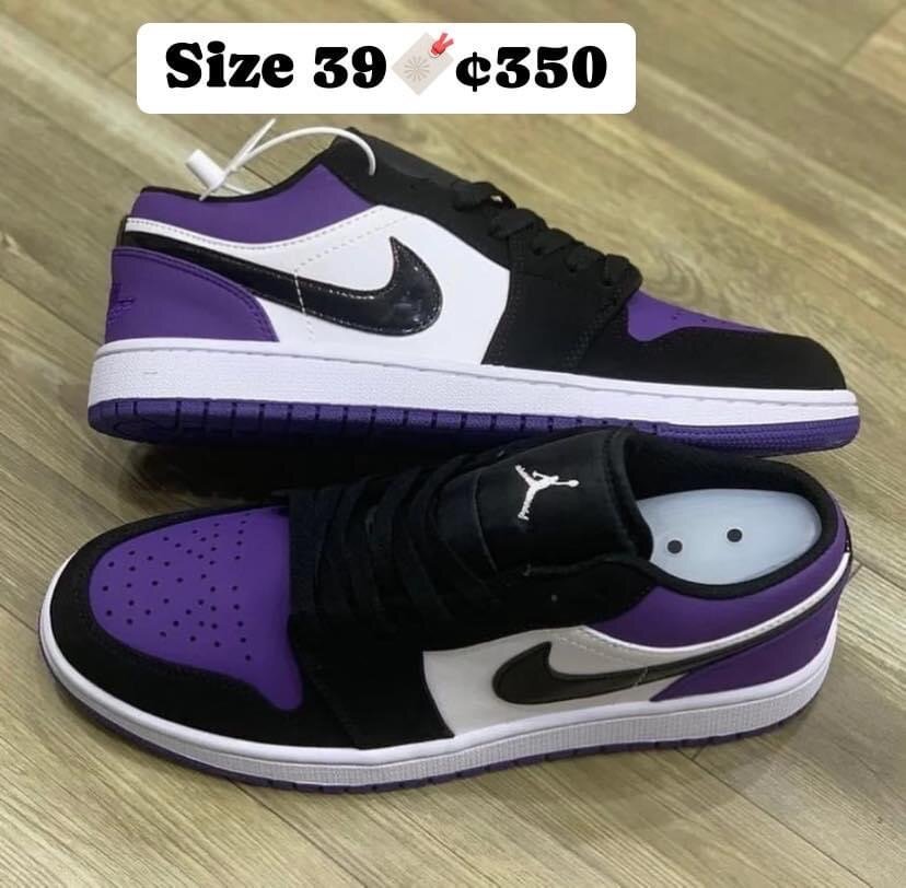 Black and purple Air Jordan sneakers, size 39