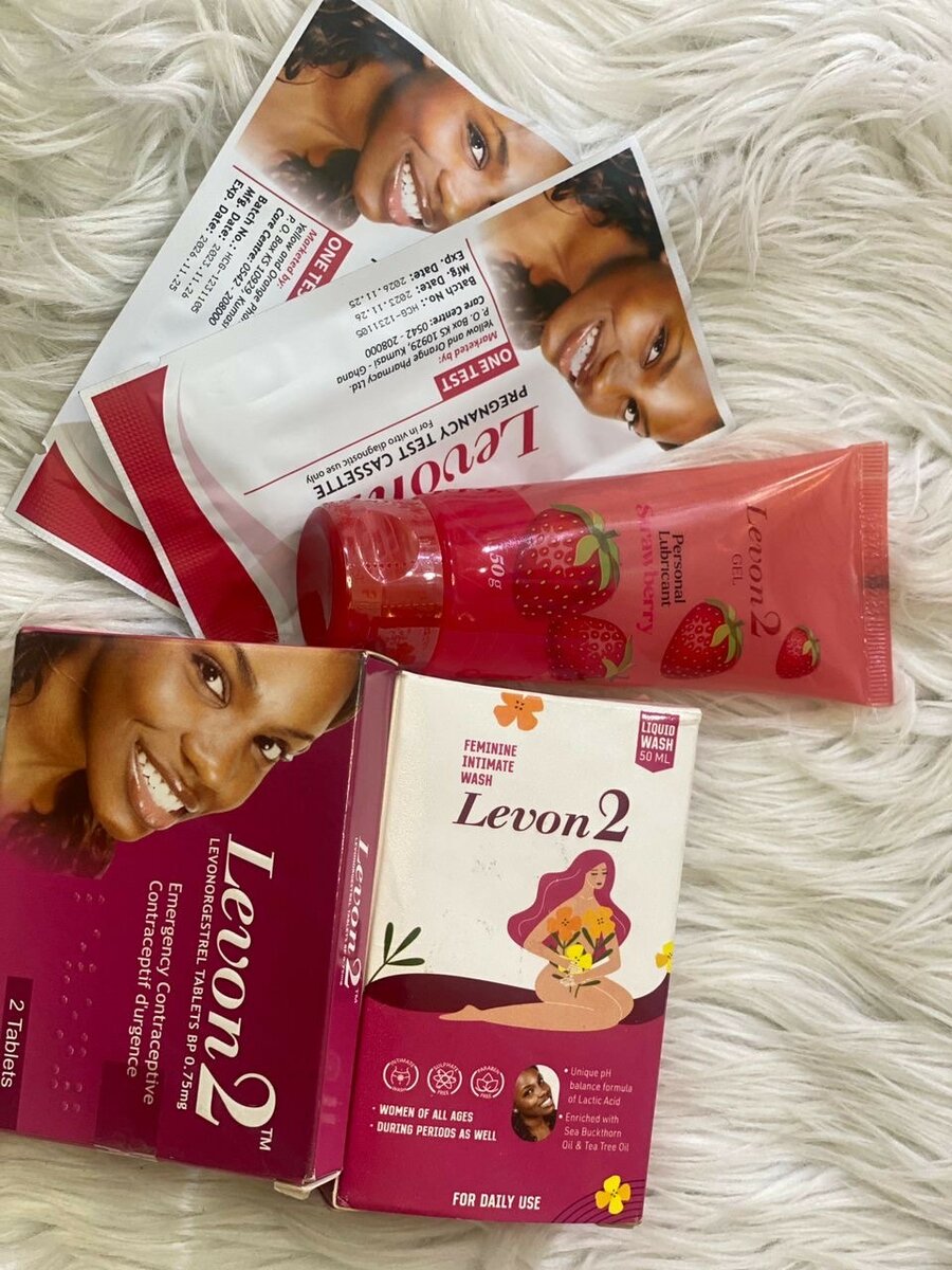 A combo for ladies which consists of pregnancy test, lubricant, feminine wash, and a contraceptive