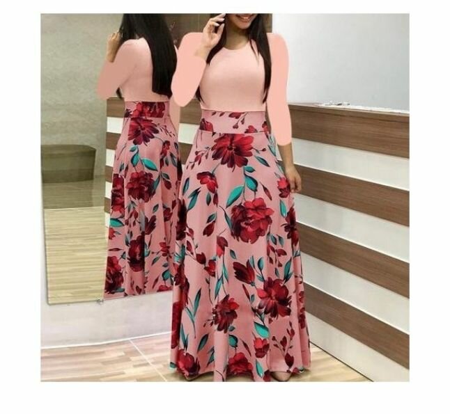 Flower Pattern Ladies Casual Half Sleeve, Long Dress