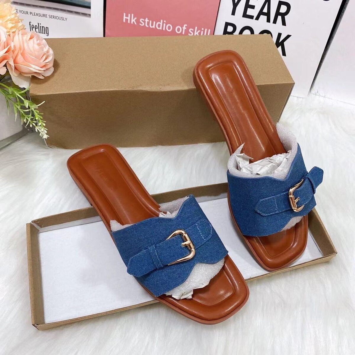 Denim slippers