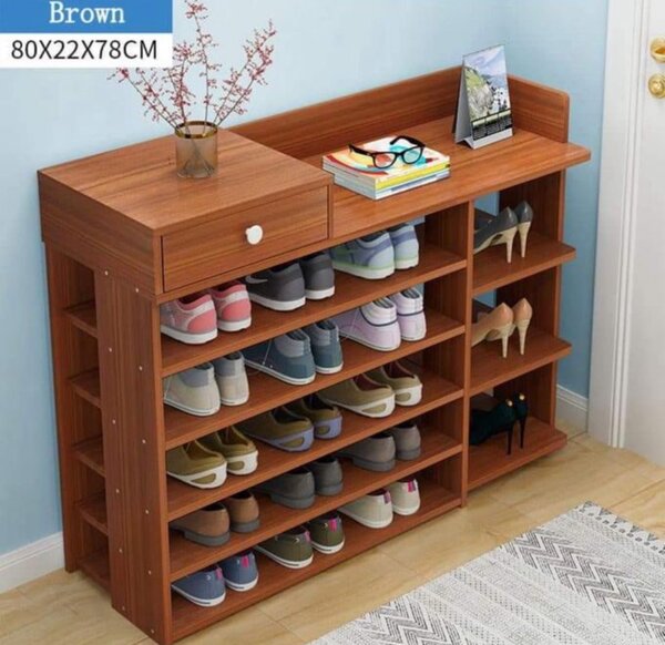 Wooden Shoe Rack With Mini Top Drawer - Brown