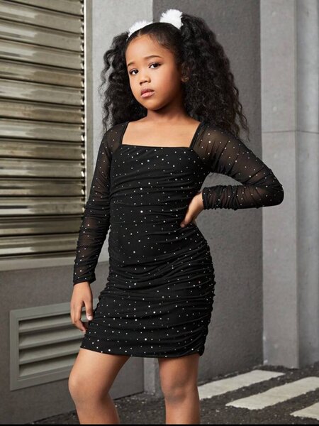 SHEIN SXY Mock Neck Lettuce Trim Glitter Bodycon Dress