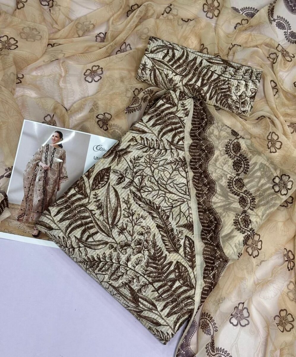Lady's 3pc Unstich Suit Lawn Colection 2025