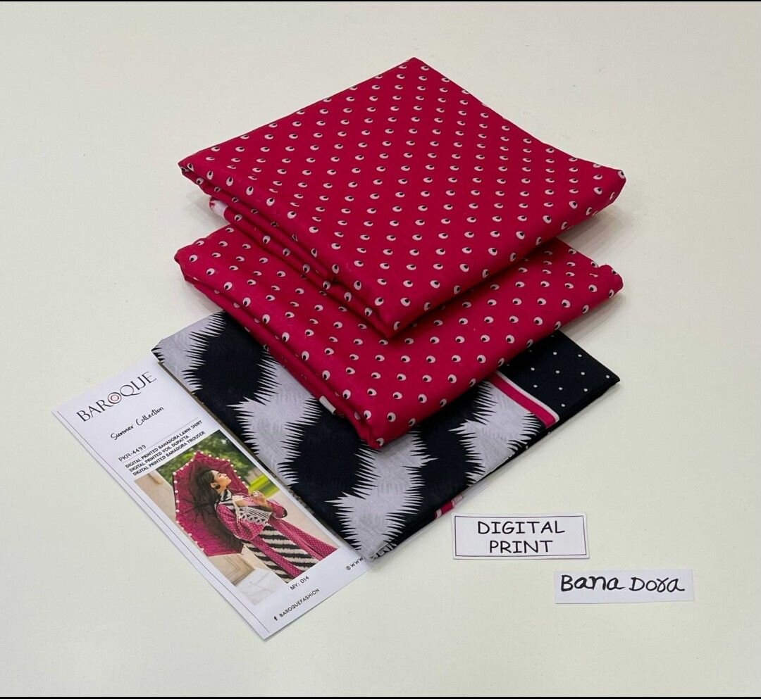 Lawn Digital Print Bana Dora 3Ps Brand : Baroque ️Shirt Bana Dora Lawn Digital Print ️Trouser Bana Dora Lawn Digital Print ️Dupata Voil Digital Print