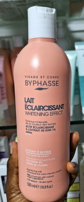 Découvrez le lait éclaircissant Byphasse pour visage et corps. Sa formule enrichie en extrait d'avoine et de kiwi offre une peau éclatante et uniforme. Idéal pour atténuer les taches pigmentaires.