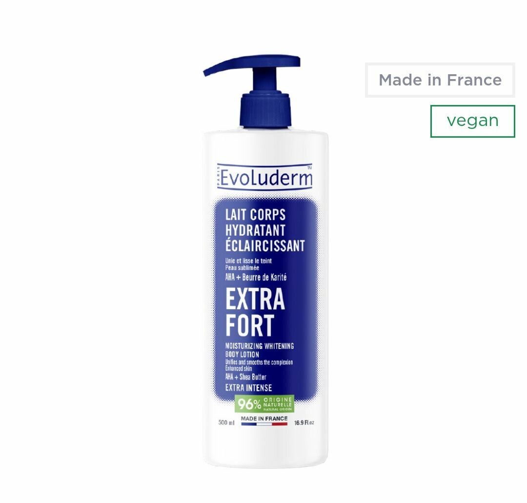Découvrez le Lait Corps Hydratant d'Evoluderm, fabriqué en France. Enrichi en AHA et beurre de karité, il offre une hydratation intense et un éclaircissement de la peau. Parfait pour une peau douce et lumineuse. Formule vegan et 96% d'origine naturelle.
