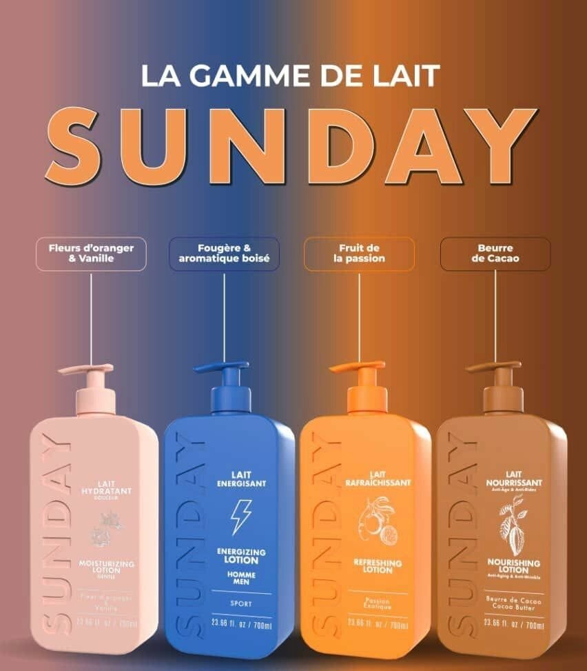 Découvrez le lait et gel douche hydratant Sunday, enrichi en fleurs d'oranger et vanille pour une peau douce et parfumée. Exotique et rafraîchissant, il revitalise votre quotidien. Parfait pour tous types de peau, idéal pour une routine revitalisante.