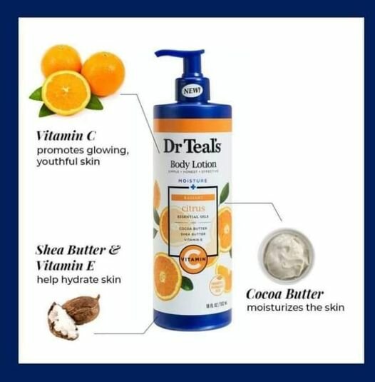 Le lait américain Dr Teal's enrichit en beurre de karité, vitamine C et vitamine E: