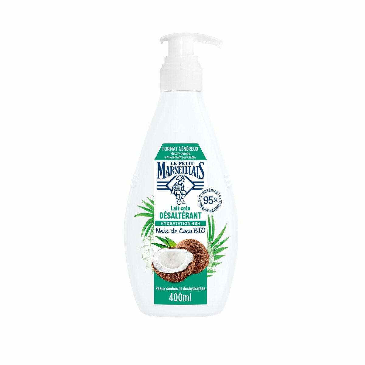 Découvrez le lait hydratant "Le Petit Marseillais" à la noix de coco bio, idéal pour les peaux sèches. Sa formule enrichie réhydrate et revitalise votre peau au quotidien. Parfait pour une douceur et une fraîcheur longue durée.