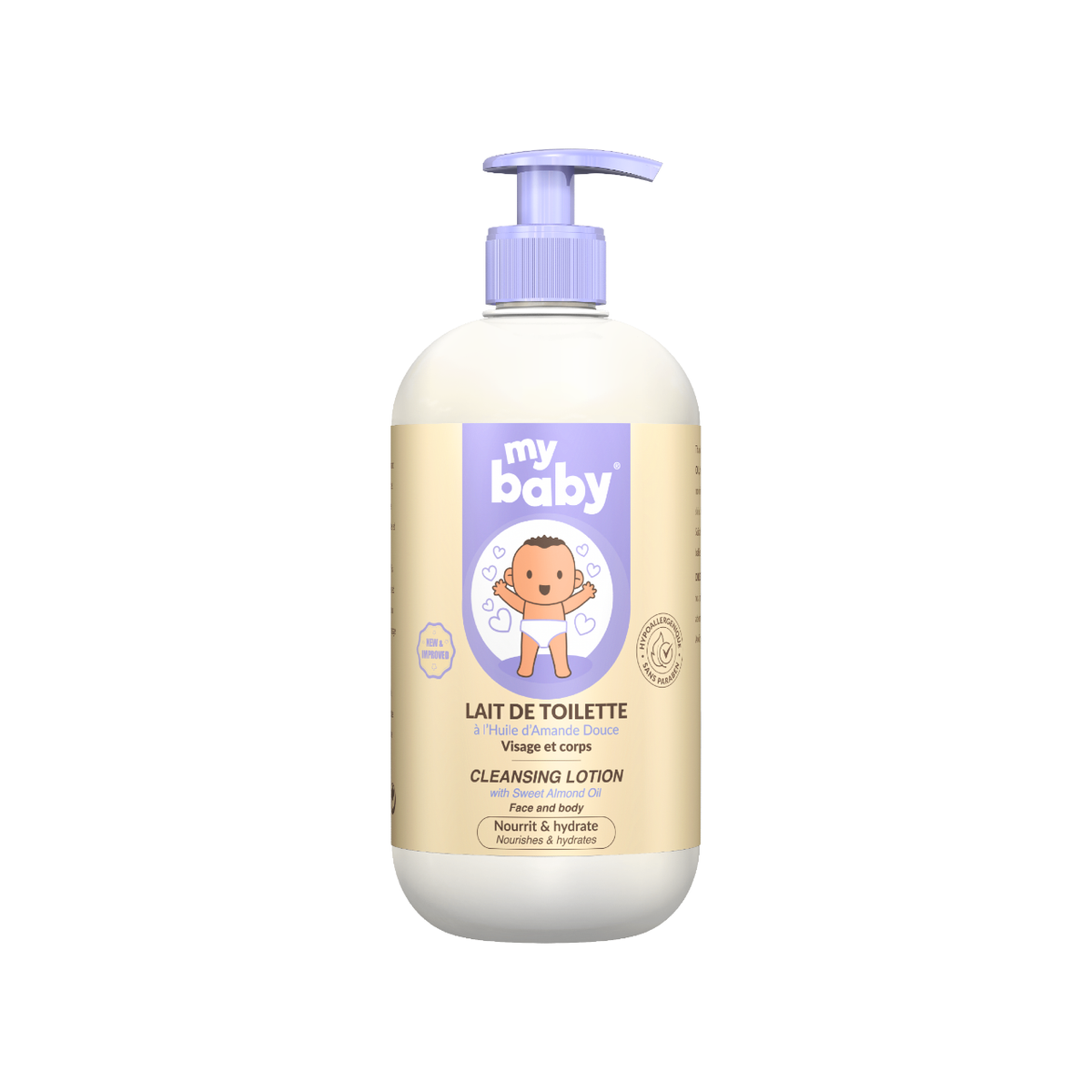 Grâce à sa nouvelle formule à l'HUILE D'AMANDE DOUCE, le lait de toilette hydratant MY BABY hydrate et nourrit immédiatement et durablement la peau du bébé. Elle retrouve douceur et confort.Adapté aux peaux délicates et sensibles des bébés.
