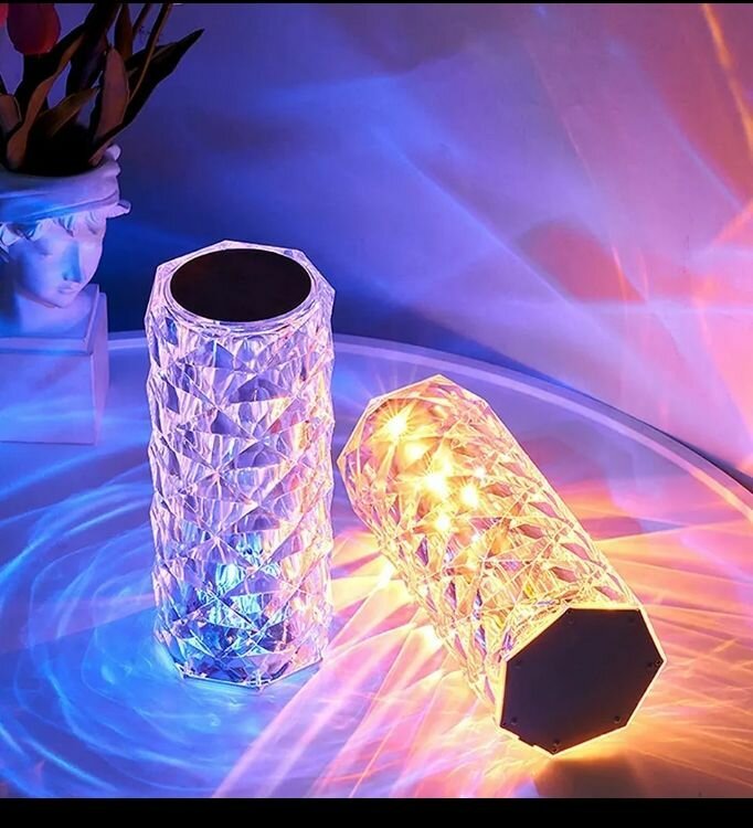 Illuminez votre espace avec cette lampe LED cristal RGB. Parfaite comme veilleuse, éclairage de table romantique ou lampe de fête aux couleurs éclatantes. Transforme votre environnement avec style et élégance.