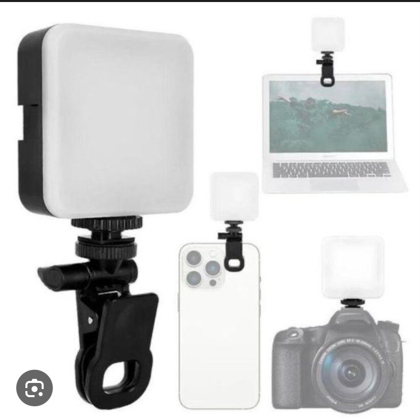 Lampe LED clip universelle pour smartphone, tablette et caméra. Parfaite pour les appels vidéo, le vlogging et la photographie. Offre un éclairage puissant et ajustable. Compacte et facile à transporter. Faites briller votre création partout !