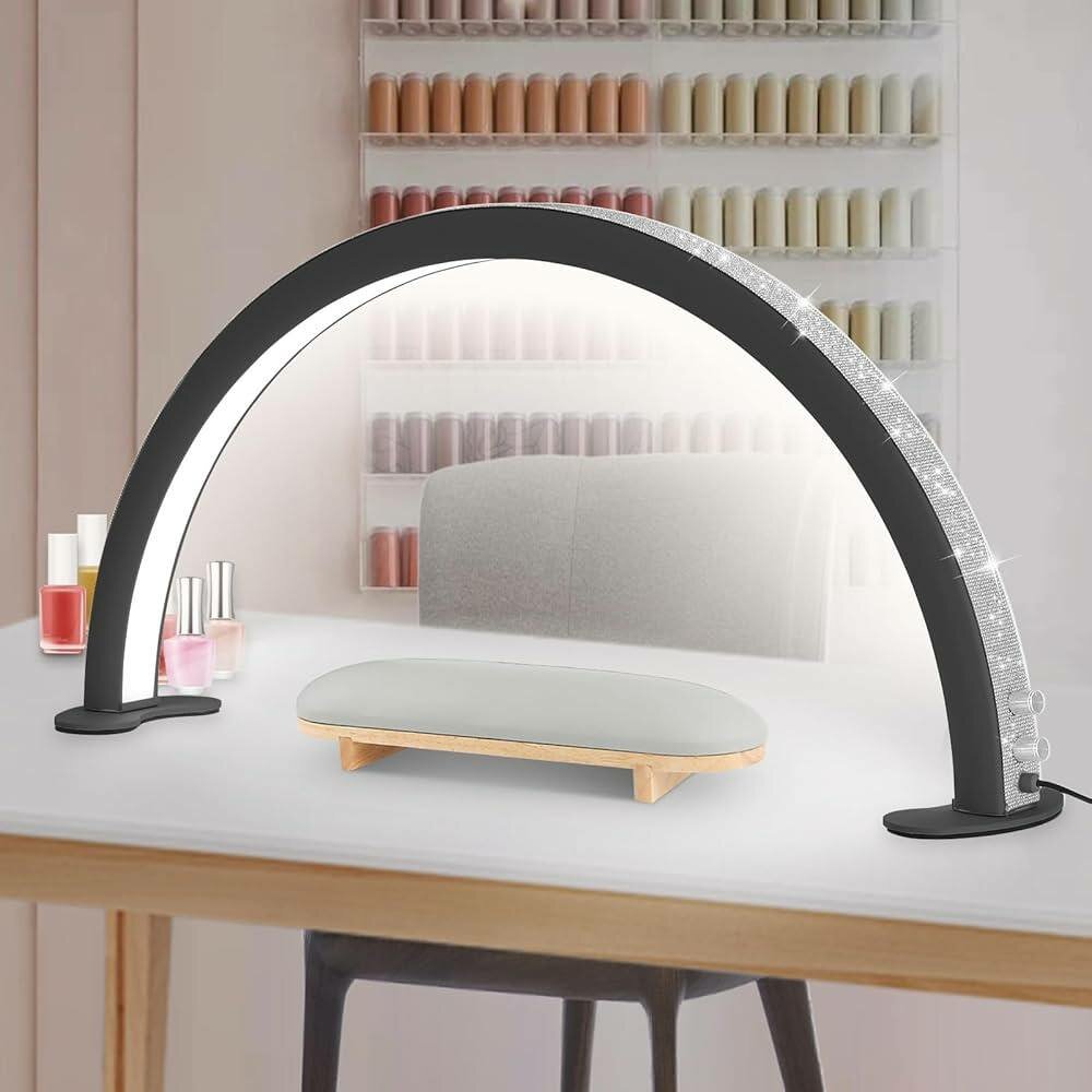 Apportez une touche moderne à votre espace avec cette lampe LED en forme de demi-lune. Parfaite pour un bureau ou un salon, elle offre une ambiance lumineuse ajustable. Idéale pour la décoration intérieure moderne.