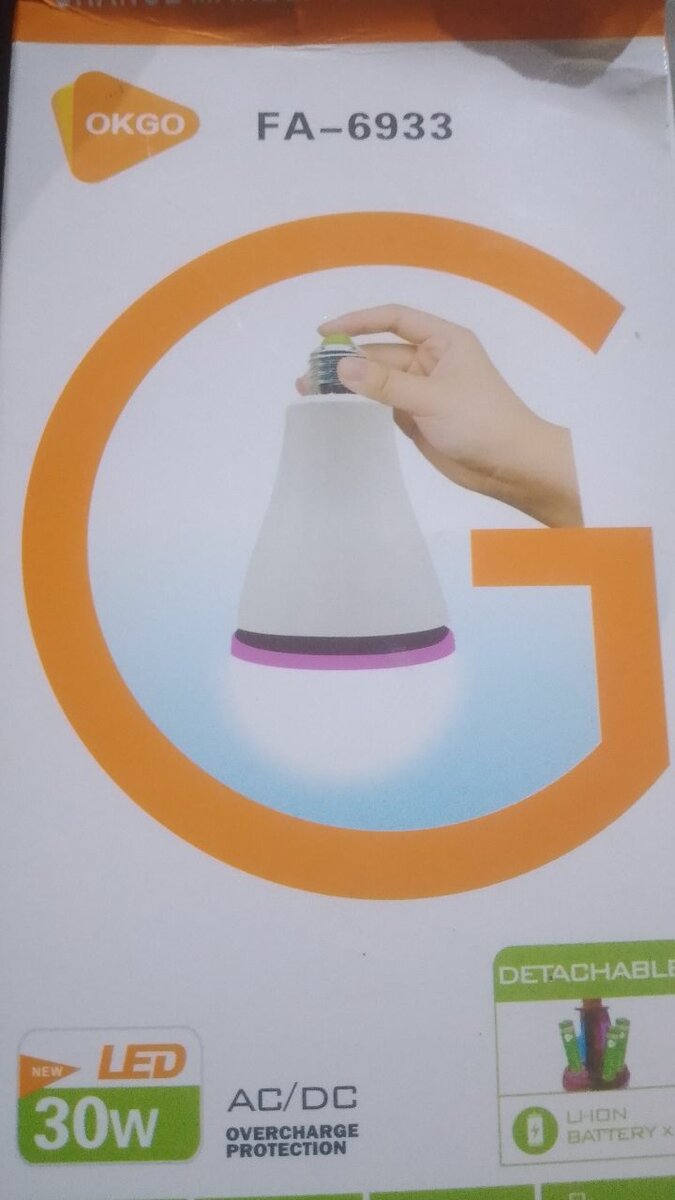 Lampe LED OKGO 30W, rechargeable, idéale pour le camping, les pannes de courant. Autonomie longue, lumière puissante et durable.
