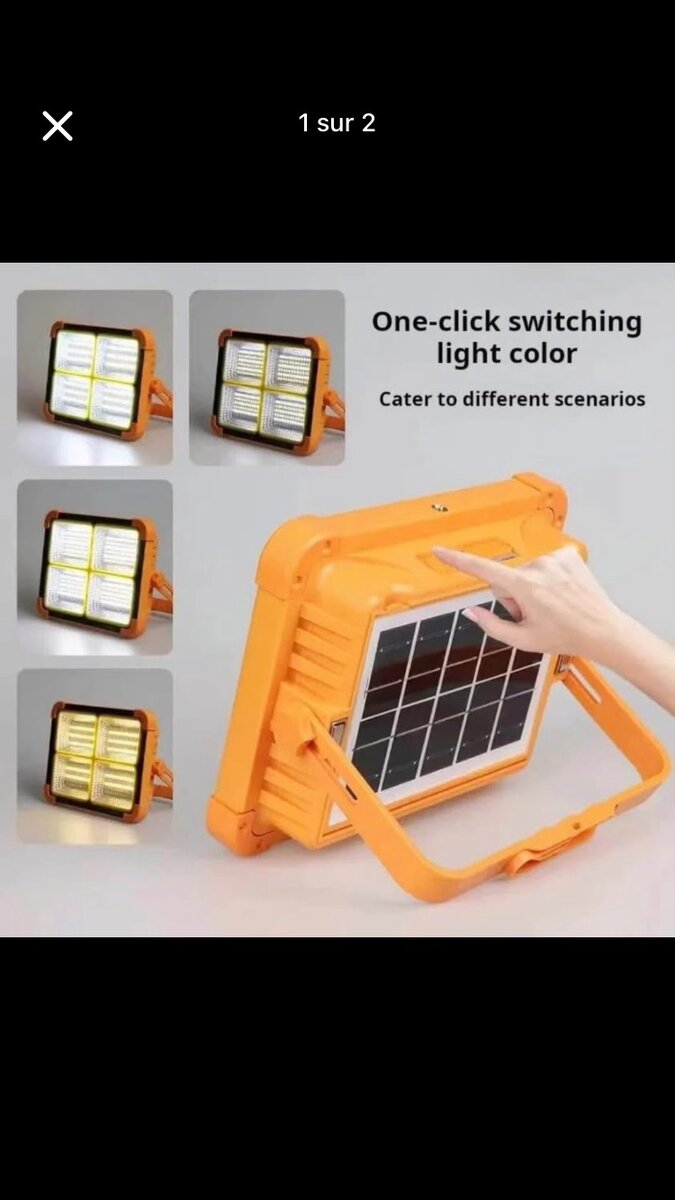 Lampe solaire LED, idéale pour le camping ou travaux extérieurs. Changez facilement la couleur de la lumière pour s’adapter à vos besoins. Durable, écologique et pratique.