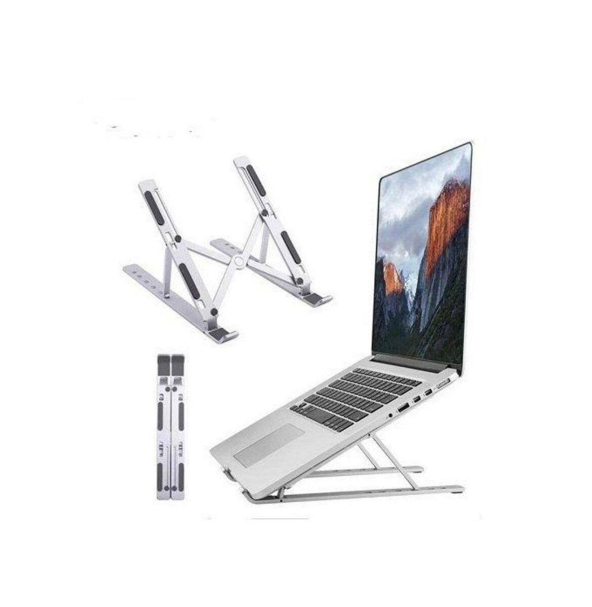 Metal portable laptop stand (holder), black and silver colors available.