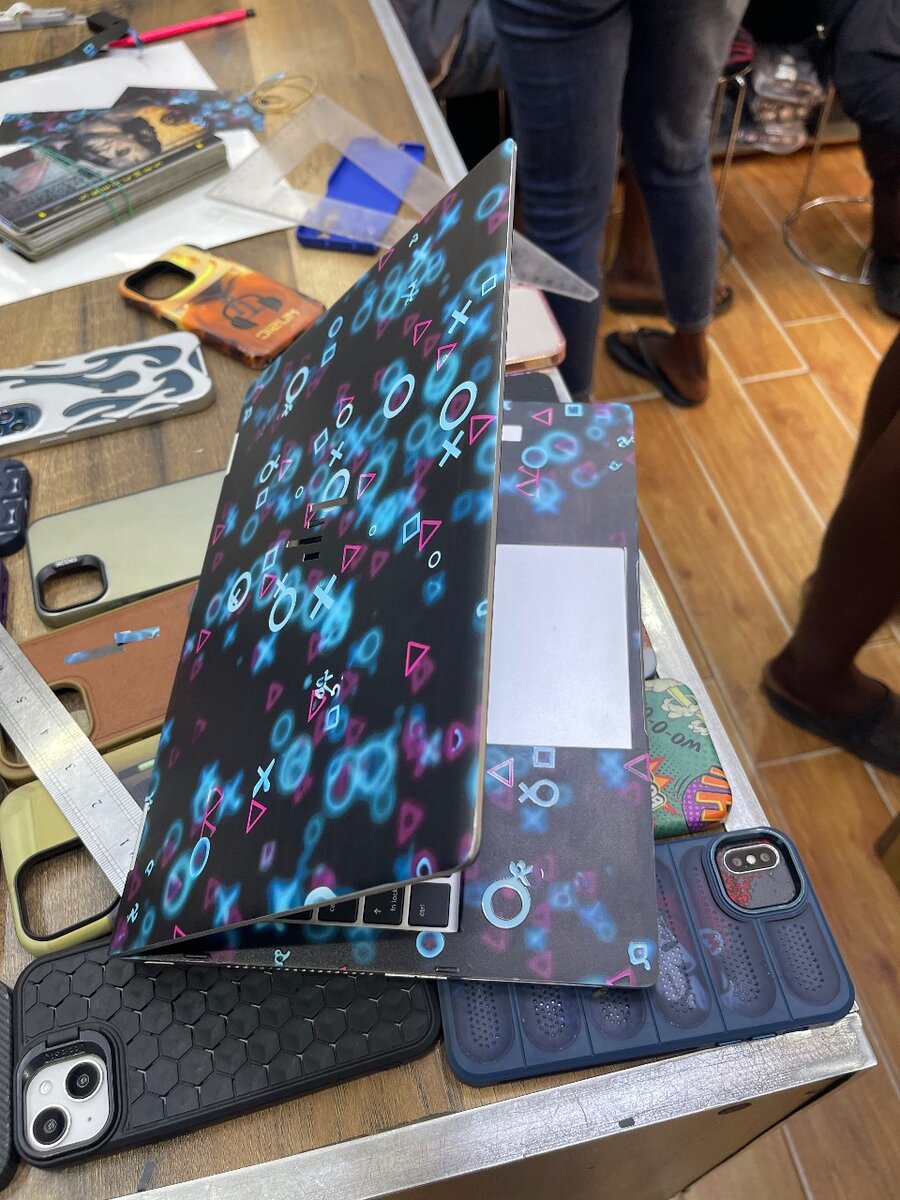 Laptop stickers and phones