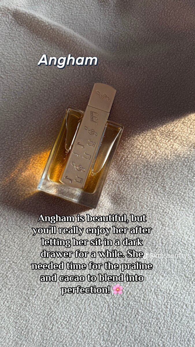 Lattafa Angham is a very interesting scent to my nose. The base of the fragrance is soft, musky, vanillic sweet, feminine leaning.