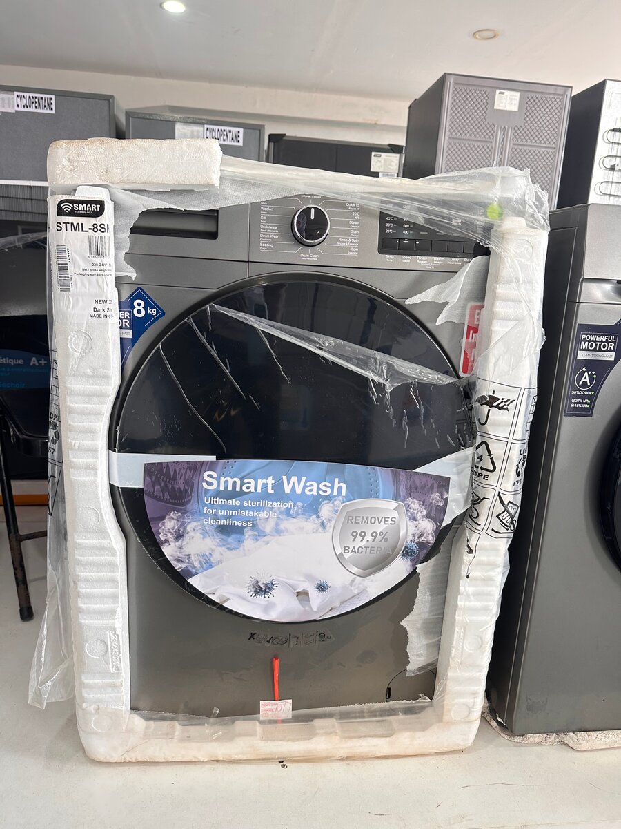 Optez pour le lave linge Smart avec capacité de 8 kg, qui élimine 99,9% des bactéries. Idéale pour des lavages efficaces et hygiéniques. Garantie 1 ans