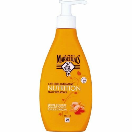 Découvrez le lait hydratant nutrition Le Petit Marseillais, enrichi au beurre de karité et à l'huile d'argan pour une hydratation 24h. Idéal pour les peaux très sèches.