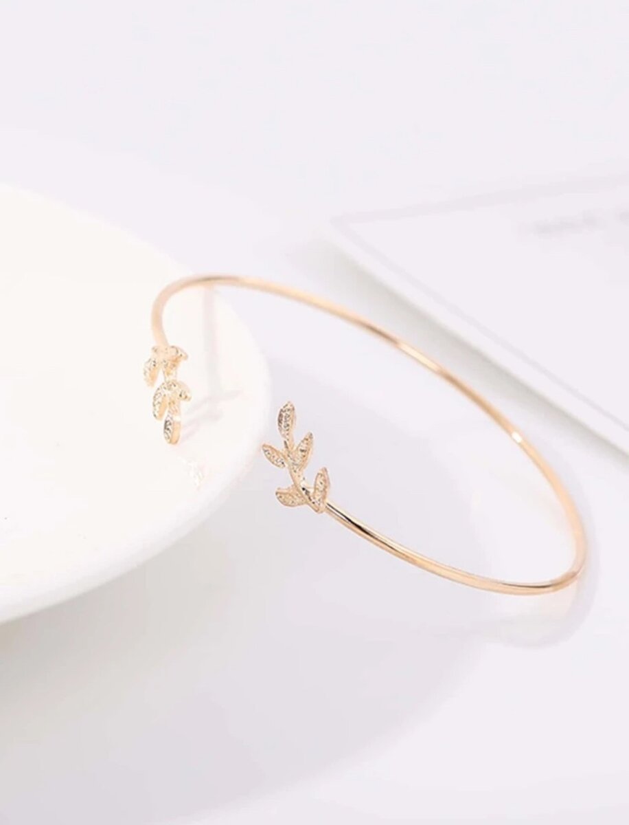 Leaf decor cuff bangle