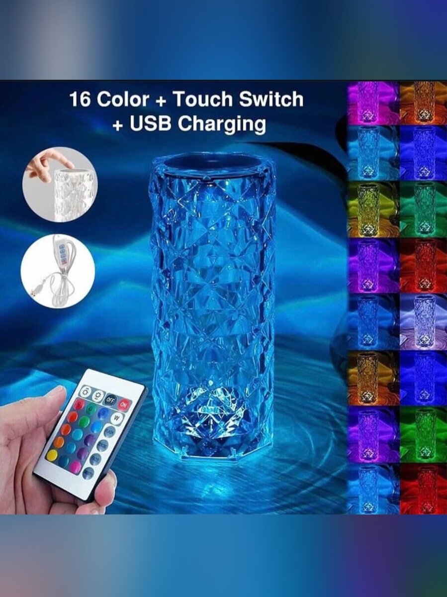 16 Color Changes LED Table Lamb. 3 Light Intensities Rechargeable Tactile Switch Remote control Up to 12 hours battery life