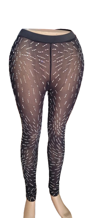 Découvrez ces leggings transparents ornés de strass étincelants. Parfaits pour une soirée ou un événement spécial, ils ajoutent une touche glamour à votre tenue. Fabriqués avec soin, ils sont à la fois confortables et élégants. Idéal pour celles qui souhaitent briller et se démarquer. DISPONIBLE