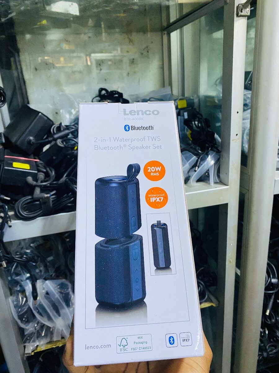 2in 1 water proof TWS Bluetooth Speaker Set 20W Lenco BTP-400BK Uk Brand Performs like JBL flip 4