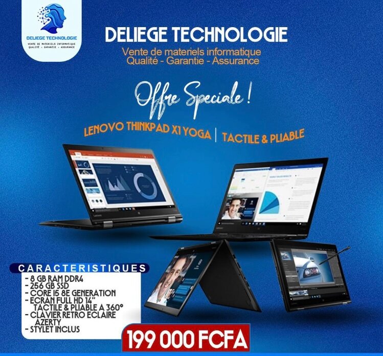 Ordinateur portable 2-en-1, écran tactile 14" FHD, 8GB RAM, 256GB SSD, idéal pour professionnels et étudiants.