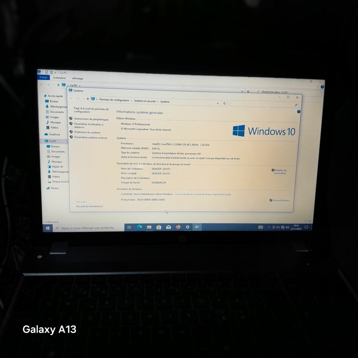 Lenovo core i3 installation Windows 10 processeur Intel core i3 5005u G2.00GH2 2.00Gh2 mémoire Intel 400ga type systèmes d'exploitation 64bits processeur 64